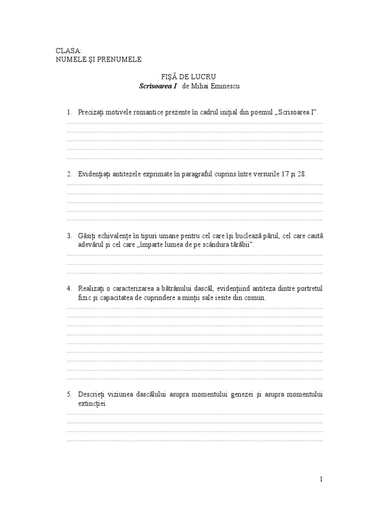 Este al apte lea din cei 11 copii ai cminarului gheorge eminovici provenit dintr o familie de rani romni din nordul moldove. Puteti gasi foarte multe referate accesand categoriile din partea dreapta despre mihai eminescu fisa de autor. Se naşte la ipoteşti pe data de 15 ianuarie ca al şaptelea copil al familiei eminovici. Prima pagină învăţământ gimnazial limba şi literatura română diverse mihai eminescu fisa biografica mihai eminescu fisa biografica 21 aprilie 2013 20 48.