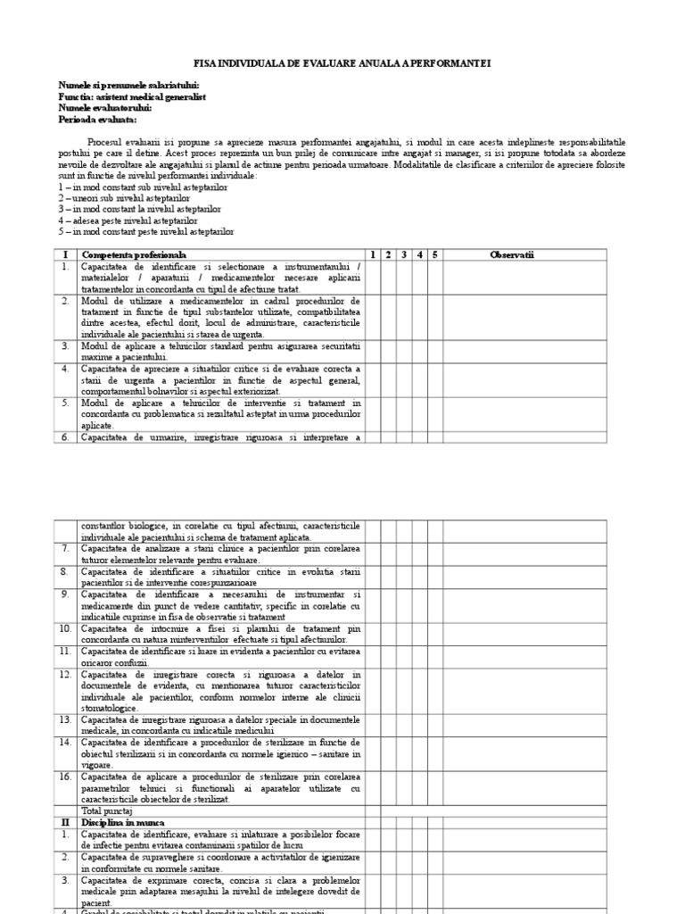 Fisa de evaluare a performantelor individuale evaluare dupa perioada de proba evaluare semestriala evaluare anuala promovare numele si prenumele persoanei evaluate. Un proces de evaluare a performantei poate sa aduca avantaje atat pentru angajator cat si pentru angajati atat timp cat este efectuat intr un mod eficient si corect. Obiective individuale criterii de performanta performante. Anexa iv u000bcriterii generale de evaluare a personalului contractual i.