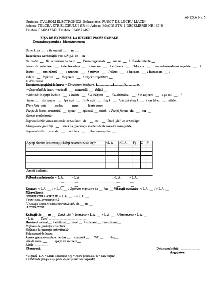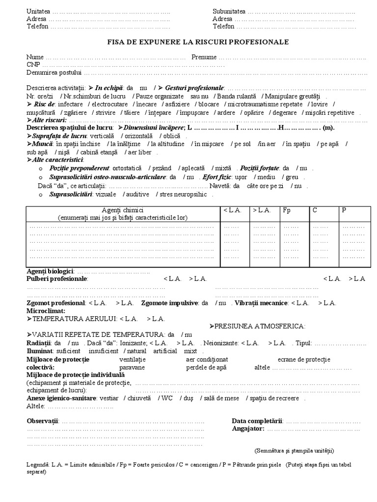 Fisa De Expunere La Riscuri Profesionale