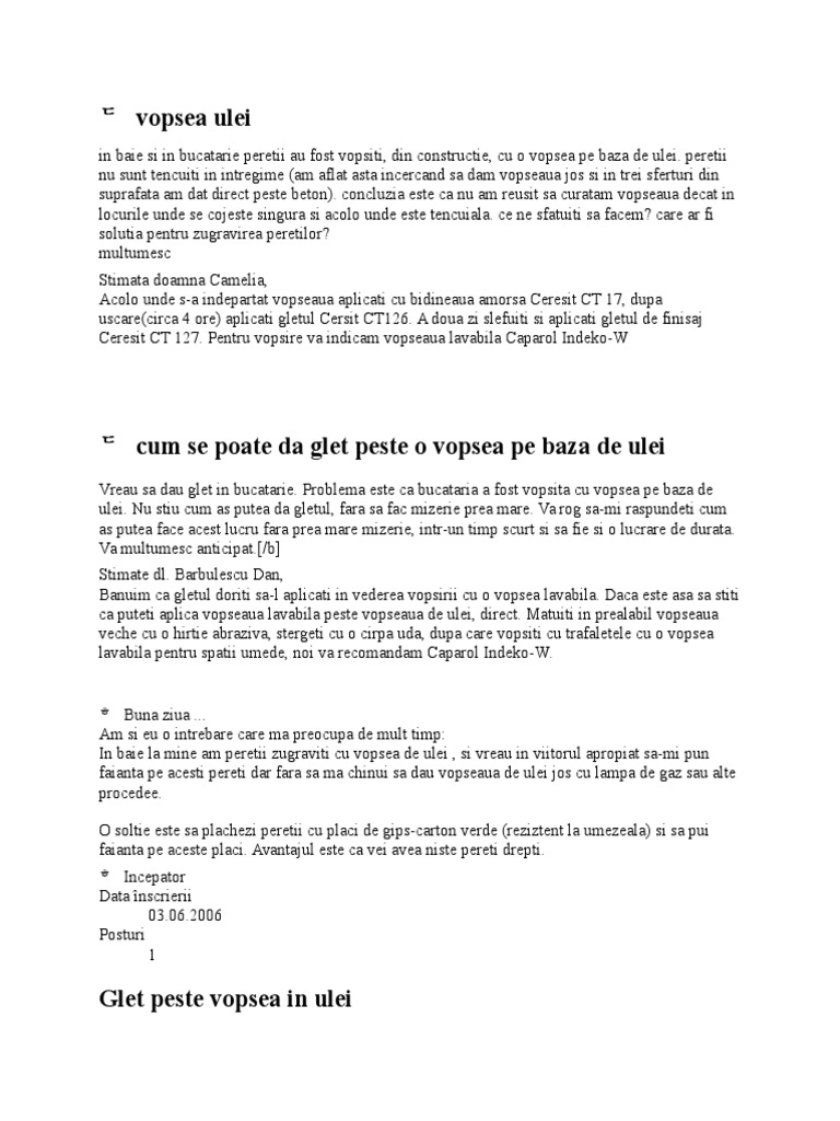 Am o cameră la o casă de la ţară şi a fost renovată acum câţiva ani tot glet şi lavabilă dar din cauza la sobă şi la altele pereţii s. 15 lei mp zugravit 2 5 nuante diagonala curcubeu valuri. Daca totusi nu se curata si considerati ca vechiul glet trebuie dat jos pana la tencuiala luati o lampa pe gaz se foloseste de catre instalatori la lipirea tevilor si pulverizati peste perete. Se poate da peste glet de var cu vopsea lavabila.