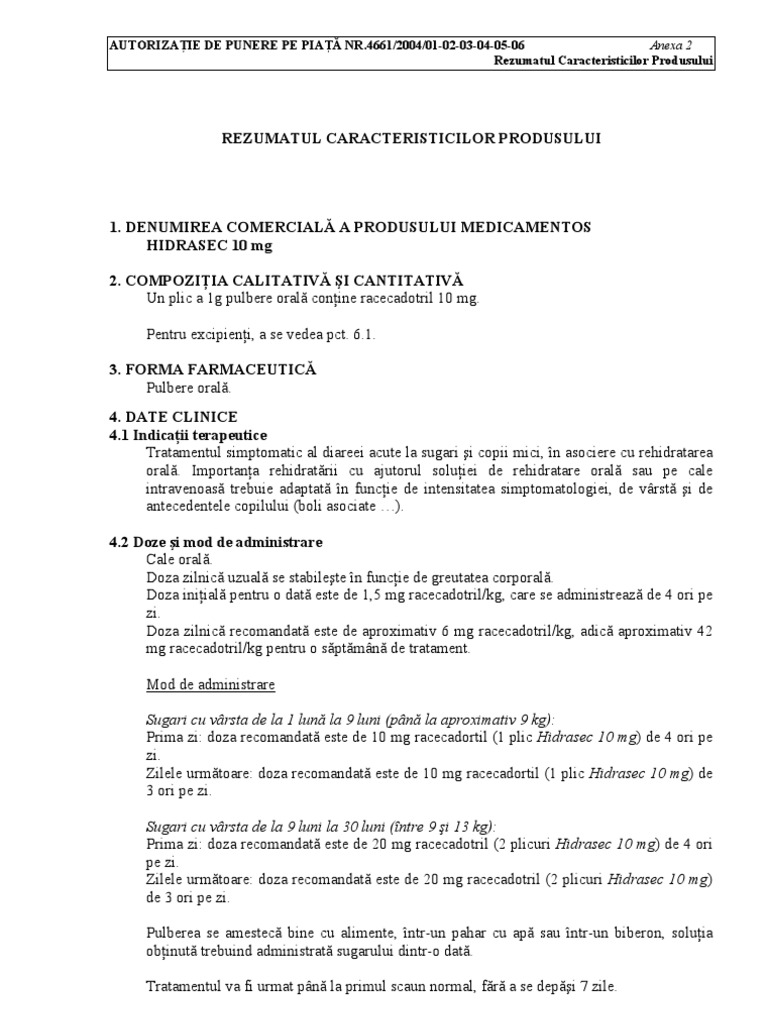 Hidrasec 10 mg prospect. Cutie cu 3 blistere a cate 10 capsule. Cutie cu 2 blistere a cate 10 capsule. Cititi cu atentie acest prospect inainte de inceperea tratamentului. Hidrasec infants is intended for children 13 kg the recommended dose is determined according to body weight.