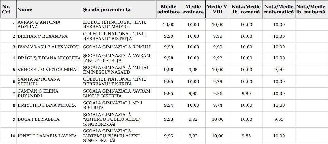 319 elevi au încheiat examenul cu media 10.