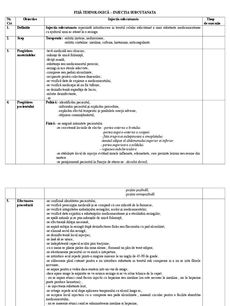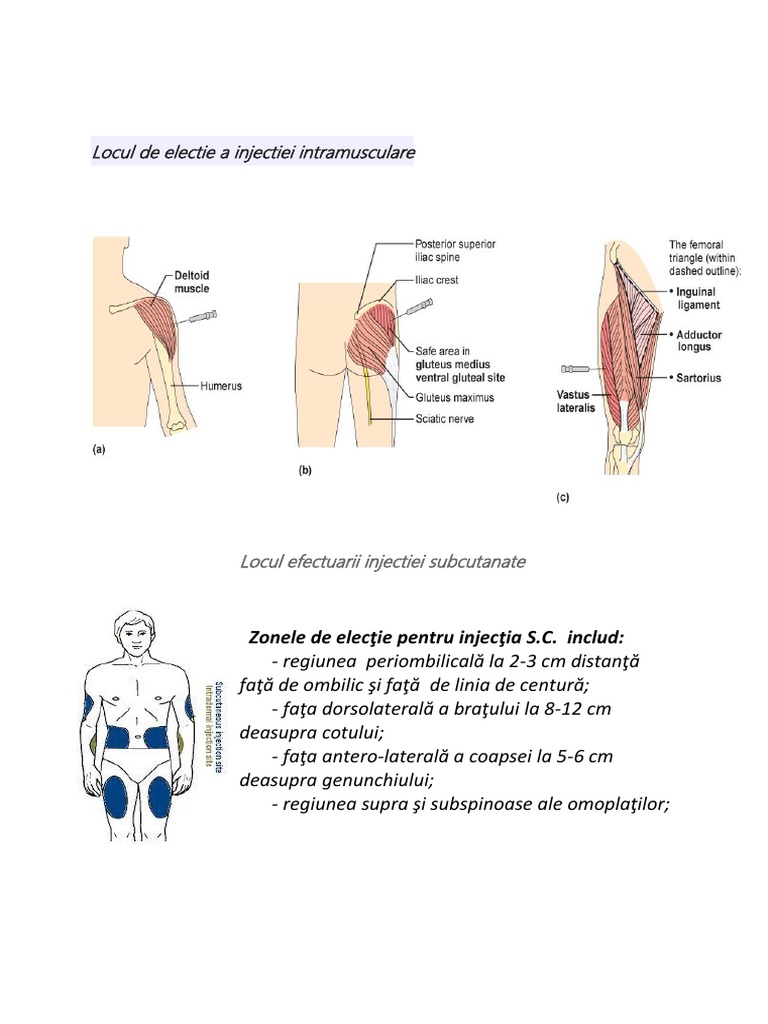 începe la 5 10 minute de la administrarea medicamentului. Injectia subcutanata locuri de electie pagina 2 introducere prin injectare a unui lichid sub piele. Scop terapeutic resorbția este lentă.